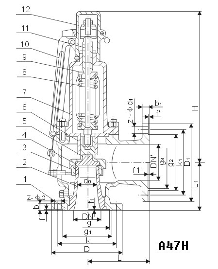 A47H帶扳手彈簧微啟式安全閥適用于工作溫度≤350℃的蒸汽、空氣等介質(zhì)的設(shè)備或管路上,作為超壓保護(hù)裝置。