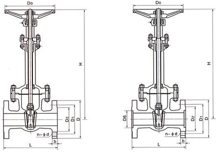 國(guó)標(biāo)低溫法蘭閘閥規(guī)格主要尺寸PN1.6MPa-2.5 MPa