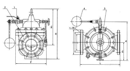100X遙控浮球閥由主閥、針閥、球閥、浮球閥、微型過(guò)濾器等組成水力控制接管系統(tǒng),調(diào)定后,自動(dòng)控制液面高度。